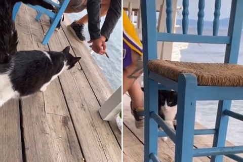 Την περασμένη Πρωτομαγιά, ένας νεαρός δελεάζοντας ένα γατί με ένα κομμάτι ψάρι, το παρέσυρε και αφού το κλώτσησε, το έριξε στη θάλασσα.