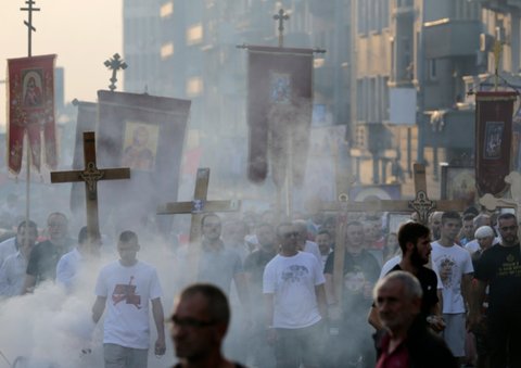 Εικόνες πολύχρωμης αγάπης αλλά και έντασης στους δρόμους του Βελιγραδίου.