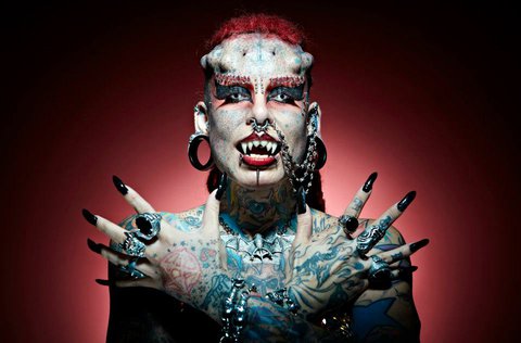 Ωστόσο, αν νομίζατε ότι ξεμπέρδεψε με τις… αλλαγές στο σώμα τ@, εκείν@ έχει άλλα σχέδια. «Θέλω να κάνω τατουάζ στα μάτια και κάτω από τη γλώσσα, ουλές, να μεγαλώσω τα ρουθούνια και τους λοβούς».