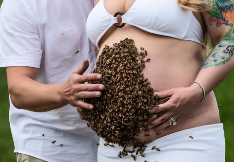 Έγκυος έκανε φωτογράφιση με 10.000 μέλισσες στην κοιλιά της