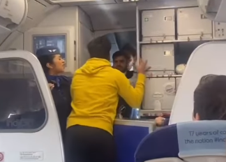 Όλα φαίνεται να ξεκίνησαν όταν ένας επιβάτης ζήτησε να αλλάξει τη θέση του. Το αίτημά του φαίνεται να έκανε έξω φρενών ορισμένους συνεπιβάτες του με αποτέλεσμα να ξεσπάσει έντονος καβγάς.