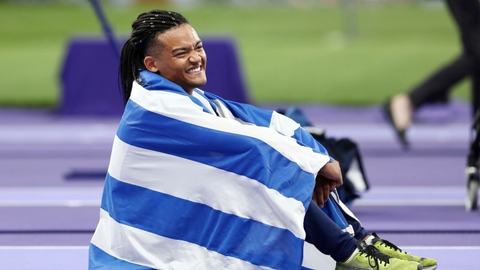 Στην κορυφαία στιγμή για έναν αθλητή, ο νεαρός επικοντιστής, κάτοχος του χάλκινου μεταλλίου στους Ολυμπιακούς Αγώνες, κράτησε την ελληνική σημαία, σε μία εικόνα που έκανε τον γύρο του πλανήτη.