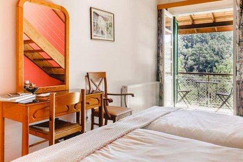 Το ξενοδοχείο βρίσκεται στο πυκνό δάσος των Πλατρών, με θέα στον γραφικό καταρράκτη των Καληδονίων.