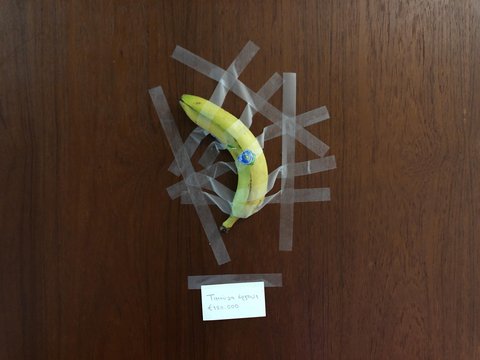 Το «έργο» με τον τίτλο «Comedian», από τον Ιταλό καλλιτέχνη παρουσιάστηκε στη διεθνή γκαλερί Perrotin στο Art Basel στο Μαϊάμι, την περασμένη εβδομάδα, και έγινε viral, καθώς η απλότητα του έργου, μια μπανάνα κολλημένη με γκρίζα ταινία πάνω σε ένα τοίχο, δεν ήταν αυτό που λέμε, υψηλή τέχνη. Ωστόσο αυτό το έργο κόστιζε 120.000 ευρώ, και φυσικά πουλήθηκε. Μόνο που πριν προλάβει ο αγοραστής να πάρει το έργο στο νέο του σπίτι, ένας άλλος καλλιτέχνης, ο David Datuna, που βρέθηκε στην έκθεση, ξεκόλλησε την μπανάνα από τον τοίχο και την έφαγε, αφού πείνασε.