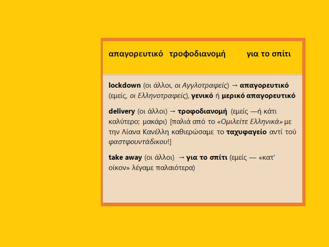Δεν είναι «delivery» αλλά «τροφοδιανομή» και δεν είναι «lockdown» αλλά «απαγόρευση». Μέσω μιας ανάρτησής του, την περασμένη Τρίτη, ο καθηγητής Γεώργιος Μπαμπινιώτης μάς παρακινούσε να… θρηνολογούμε τουλάχιστον ελληνικά! Τι το ‘θελε…
