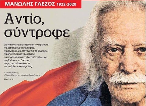Ο Μανώλης Γλέζος πέθανε χθες, 30 Μαρτίου 2020, σε ηλικία 97 ετών, αφήνοντας ως παρακαταθήκη στον ελληνισμό και τον υπόλοιπο κόσμο, το ίδιο του το όνομα.
