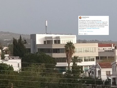 Παράλληλα, μέσω Twitter, θέση έχει πάρει και ο CEO της CYTA, Ανδρέας Νεοκλέους, χαρακτηρίζοντας «ανεύθυνο και επικίνδυνο να συνδέεται ο Covid-19 με το 5G», ξεκαθαρίζοντας πως «είναι αδύνατον να τοποθετούνται κεραίες 5G σε μία χώρα που ακόμη δεν το έχει αδειοδοτήσει».