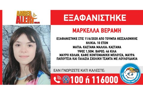 Βρέθηκε η 10χρονη Μαρκέλα η οποία είχε εξαφανιστεί στη Θεσσαλονίκη
