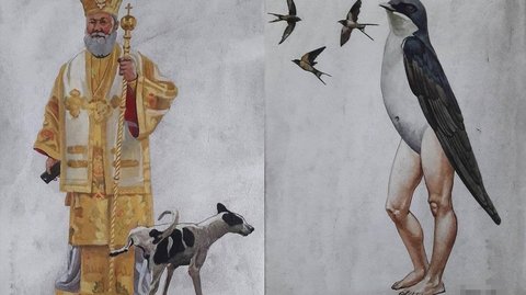 Ακούς ότι ένας αρχιερέας μας τρώει με έναν εγκληματία που τον λάδωσε με 300 χιλιάδες, για να πει την κουβέντα του, ώστε να πιάσει το διαβατήριό του. Πράγματα εξωφρενικά! Και δεν σηκώνεται ο κόσμος να αντιδράσει για τούτα, αλλά σηκώνεται για ένα εργούι ενός ασήμαντου καλλιτέχνη, που τόλμησε να ζωγραφίσει έναν σκύλο να ουρεί του Αρχιεπισκόπου.