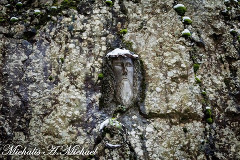 Η μορφή του Χριστού πάνω σε βράχο κοντά στον καταρράκτη της Χαντάρας