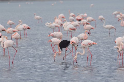 Ένα σπάνιο μαύρο θηλυκό φλαμίνγκο, επέστρεψε στην Αλυκή Ακρωτηρίου για πέμπτη φορά μέσα σε επτά χρόνια.