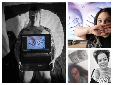 Το 2015, η καλλιτέχνις Μικόλ Χεμπρόν φιλοτέχνησε αυτοκόλλητα με ανδρικές θηλές – οι οποίες επιτρέπονται στο Instagram – έτσι ώστε οι γυναίκες που χρησιμοποιούν το Instagram να μπορούν να τις τοποθετήσουν πάνω από τις δικές τους με σκοπό να σχολιάσουν την ανισότητα.
