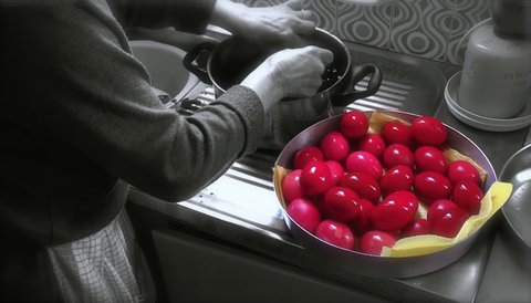 Τα αυγά τα βάφουμε κόκκινα κάθε Μεγάλη Πέμπτη σύμφωνα με την παράδοση ενώ στο τραπέζι του Μεγάλου Σαββάτου και της Κυριακής του Πάσχα τα τσουγκρίζουμε λέγοντας ο ένας στον άλλον «Χριστός Ανέστη - Αληθώς ο Κύριος».