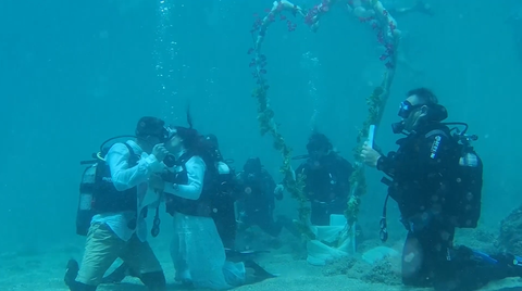 Ζευγάρι στην Αλόννησο παντρεύτηκε στον βυθό της θάλασσας (Βίντεο)