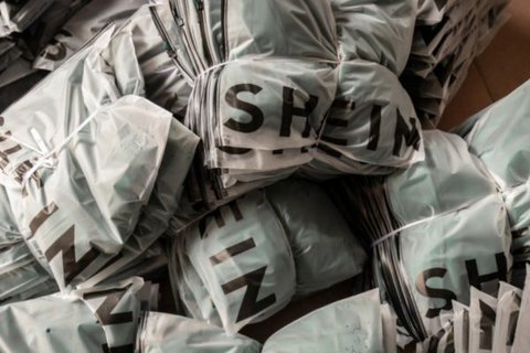 Καθώς περνάει η μέρα, τα ράφια γεμίζουν με διαφανείς πλαστικές σακούλες που φέρουν ετικέτες με τη λέξη «Shein», σακούλες πλέον εύκολα αναγνωρίσιμες στους δεκάδες εκατομμύρια πελάτες της εταιρείας.